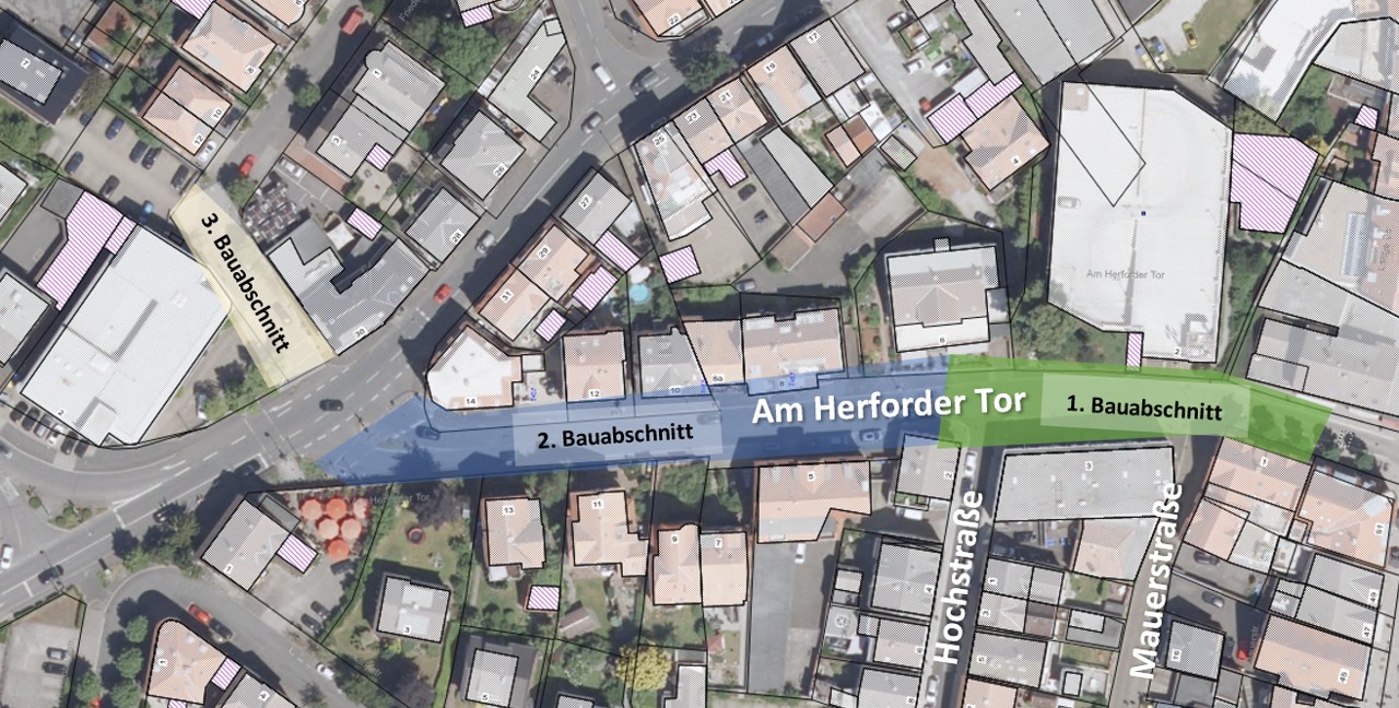 Von der Busschleuse (Am Herforder Tor Haus-Nr. 1) bis hinter die Einmündung Hochstraße
